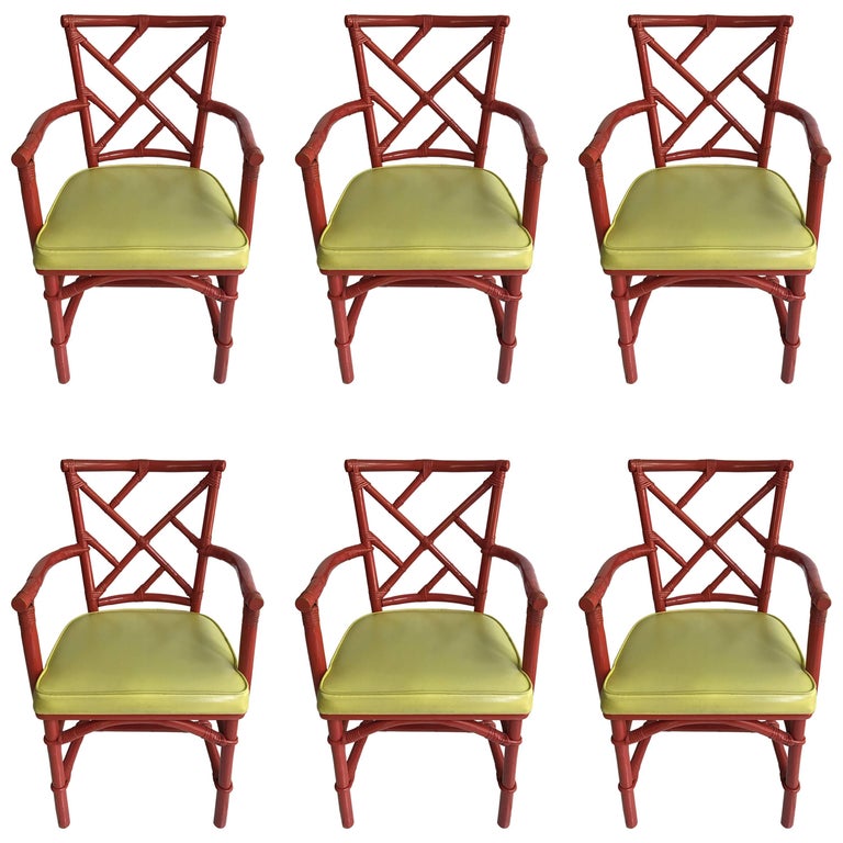 Chinese Chippendale Style Faux Bamboo Dining Chairs, Set ...